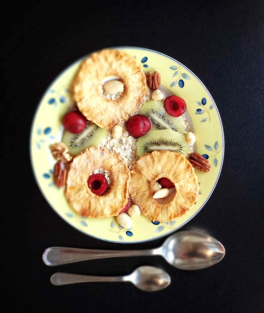 La primera toma de comida que debemos de realizar es el desayuno. Debe ser digerible, completo y en cantidad suficiente para que nos permita afrontar la primera parte del día con energía. En esta primera comida, debemos incluir tres grupos de alimentos: Lácteos, frutas y cereales. También podríamos añadir frutos secos naturales que nos aportarán grasas saludables, un plus de energía extra y nos ayudarán a mantenernos saciados por más tiempo.